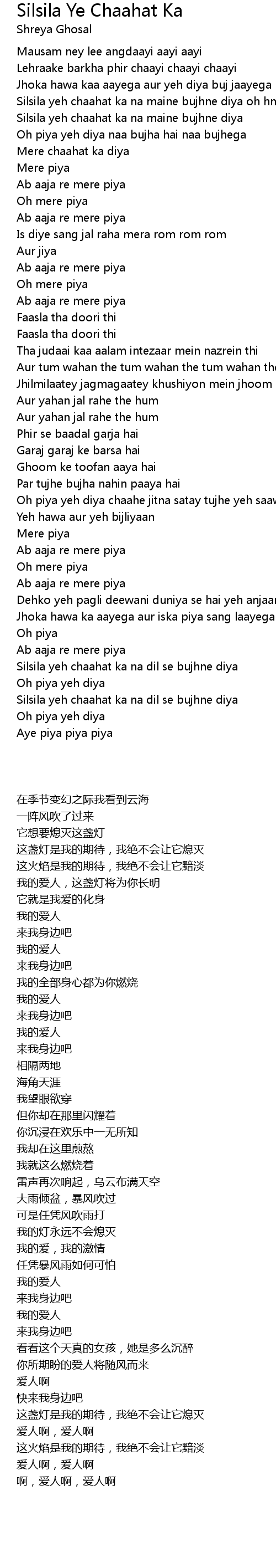 We Have got 20 pics about Silsila Ye Chahat Ka Lyrics English images, photos, pictures, backgrounds, and more. In such page, we additionally have number of images out there. Such as png, jpg, animated gifs, pic art, symbol, blackandwhite, pics, etc. If you’re searching for Silsila Ye Chahat Ka Lyrics English subject, you have visit the ideal page. Our site always gives you hints for seeing the highest quality images content, please kindly hunt and locate more enlightening articles and images that fit your interests.